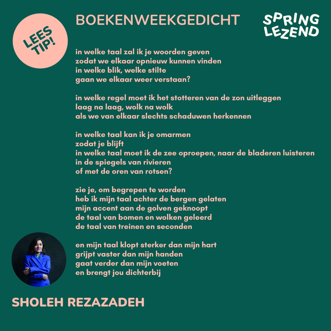 Het Boekenweekgedicht werd dit jaar geschreven door Sholeh Rezazadeh bij het thema van de Boekenweek: je moerstaal.